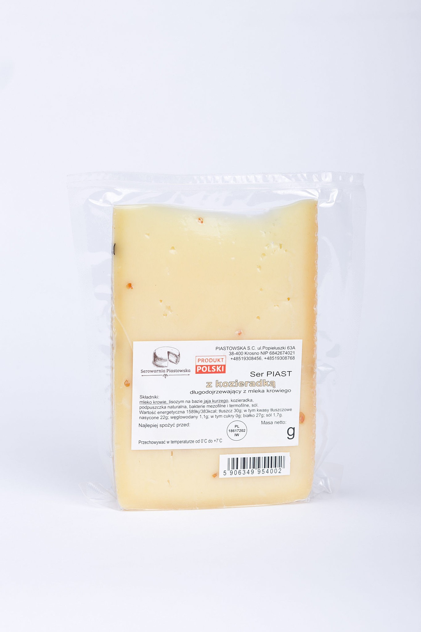 Ser PIAST dojrzewa przez około cztery miesiące, choć w naszej ofercie znajdą Państwo również starsze krążki, które z czasem nabierają jeszcze bardziej szlachetnego smaku. Jego delikatny, łagodny smak balansuje pomiędzy klasycznymi serami, takimi jak Gołda, a bardziej wyrazistym Rakletem, co sprawia, że jest idealnym wyborem na każdą okazję – doskonale sprawdza się zarówno jako przekąska, jak i składnik potraw, w tym do stopienia w makaronie czy na pizzy.